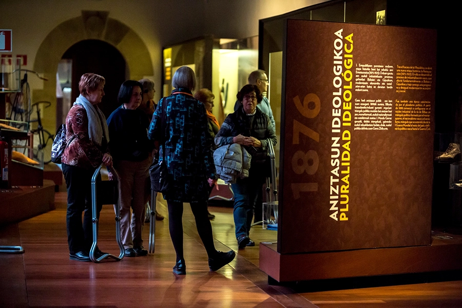 55 urtetik gorakoentzako bisita gidatua. XIX. eta XX. mendeen artean Euskal Herrian bizi izan zen modernizazio-prozesua azaltzen duen erakusketa iraunkorrera bisita. Gizartea, janzkera, industria, kultura eta aisia.